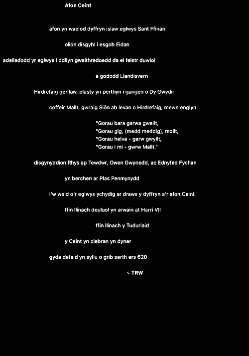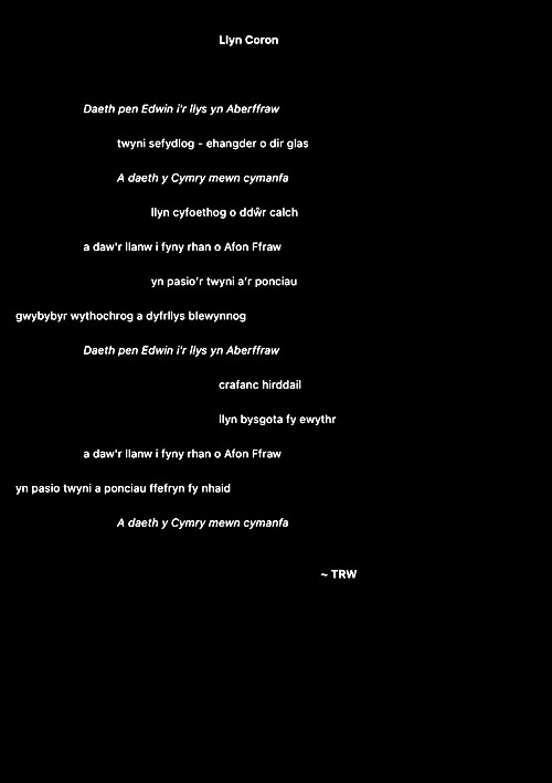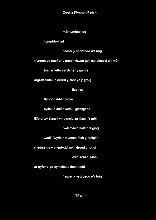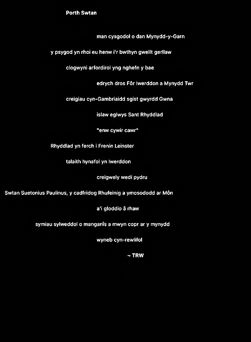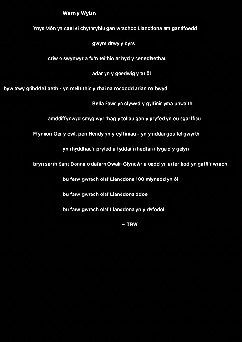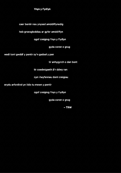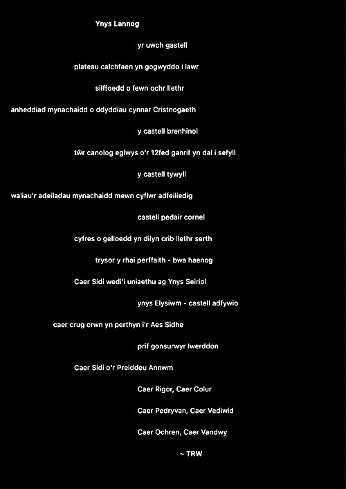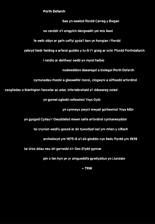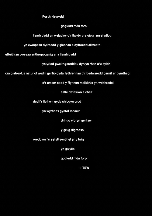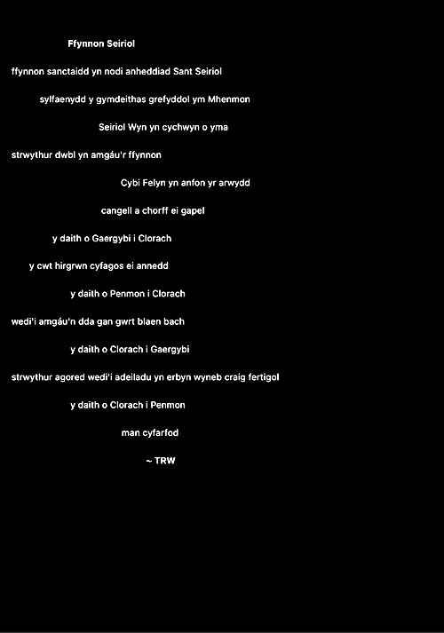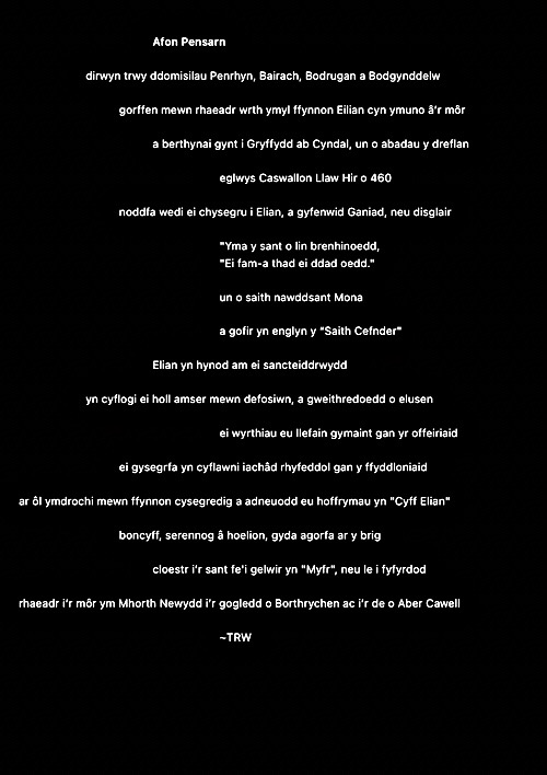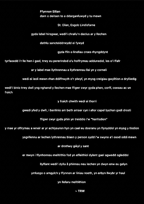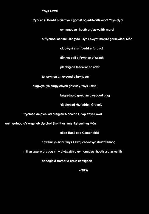 Rwy’n cael fy nenu at y syniad o ysgrifennu gweithiau sain cryno fel ciplun i ddal ysbryd lle. Ni fydd haenau trwchus ar y rhain fel gyda llawer o’m hoffrymau. Dyma’r cyntaf. Fel erioed, mae wedi’i chysegru i’r ysbrydion sy’n crwydro’r ynys hon, gan gofio beth ddigwyddodd yma.
